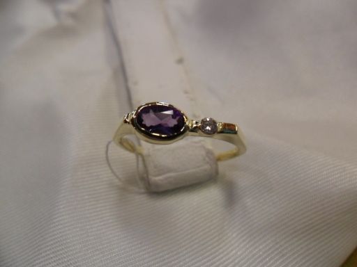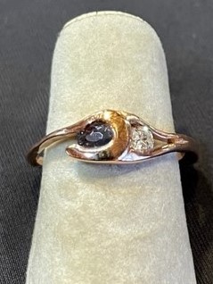 14K rose gold ring set with a 0.28 carat natural alexandrite and 15 point diamond.