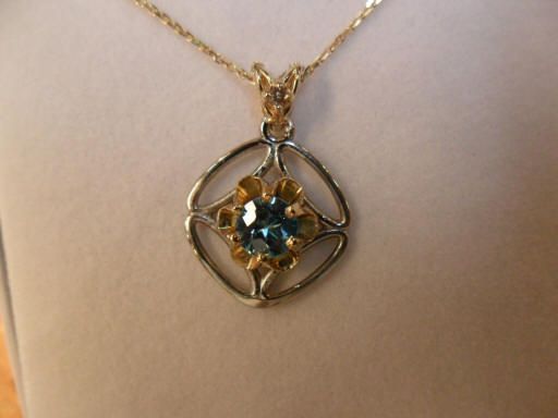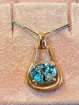 14K rose gold pendant set with an oval 2.40 carat blue zircon.