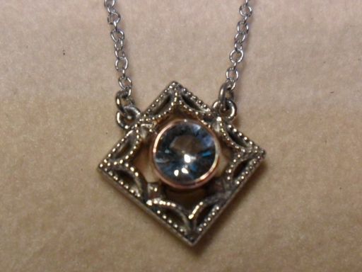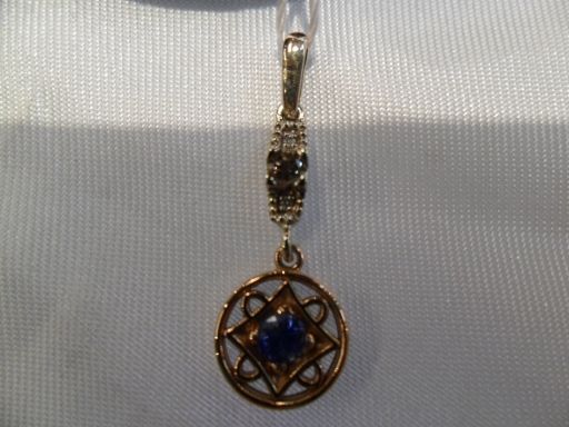 14K rose and white gold filigree pendant with 0.05 ct. cognac diamond and 0.15 ct. Ceylon sapphire.