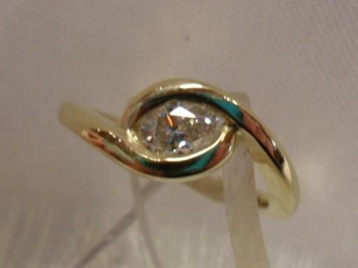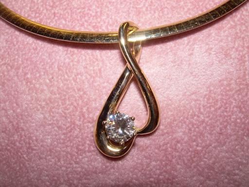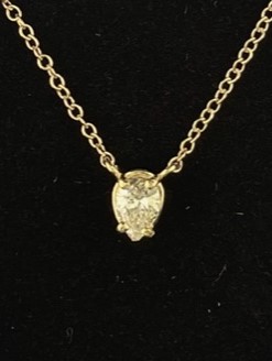 14K yellow gold solitaire diamond pendant set with a pear shape 0.40 carat diamond.