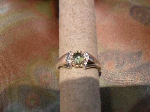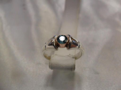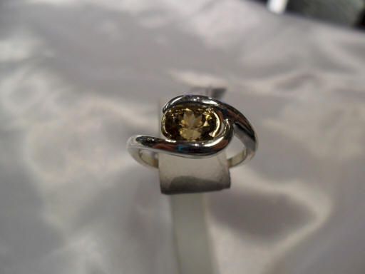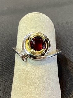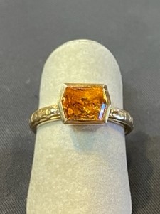 Sterling silver shank and 14K yellow gold semi-bezel set with a 1 ct. oval natural honey zircon.