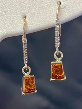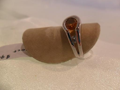 Sterling silver mounting set with an imperial topaz and diamond accents.