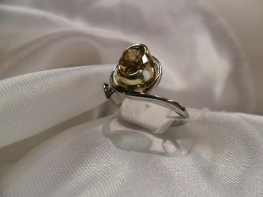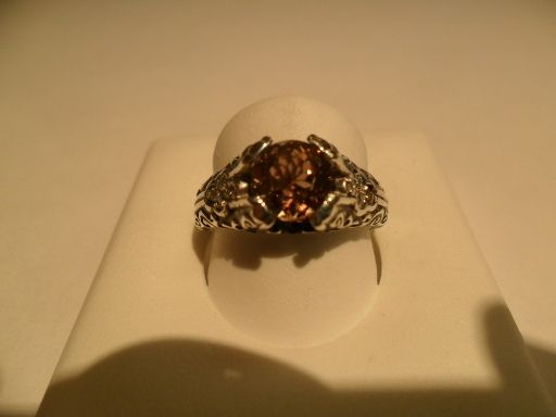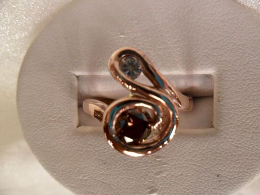 14K rose gold "S" ring set with 1 ct. brown diamond and 0.2 ct. white diamond.