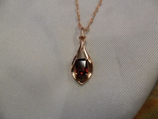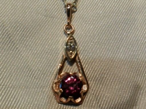 14K rose and white gold pendant set with a color change garnet and diamond.