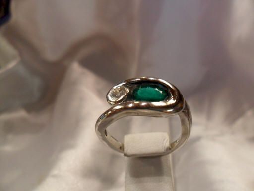 Palladium bezel ring set with 1.75 ct. natural emerald and 0.2 ct. round diamond.