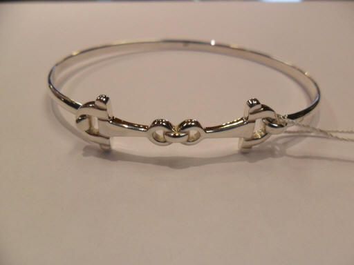 Sterling silver full cheek snaffle bit hinged bangle bracelet.
