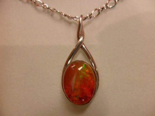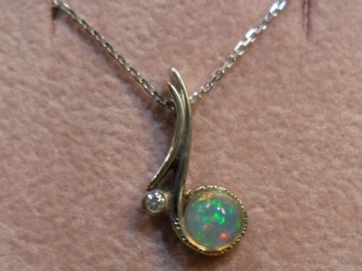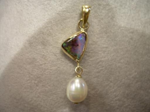 14K yellow gold bezel set opal and pearl drop pendant made with customer's stones.