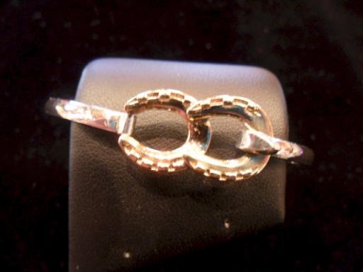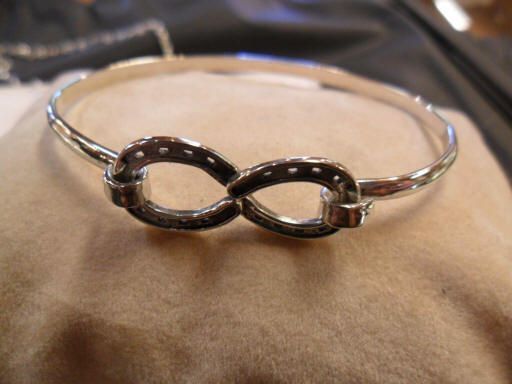 Sterling silver hinged bangle bracelet with horseshoe infinity center.