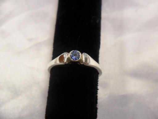 Sterling silver and 14K yellow gold "horseshoe nail" ring set with Ceylon sapphire.