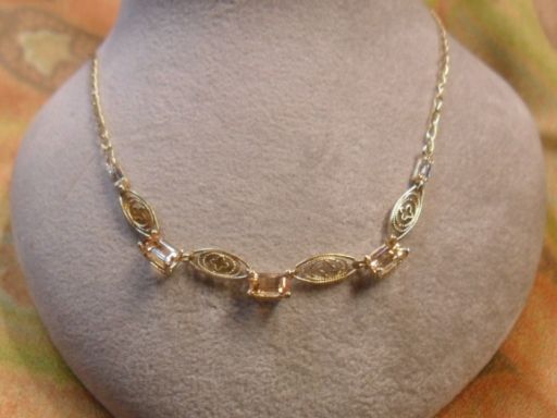 14K yellow gold Imperial Topaz and filigree link necklace.