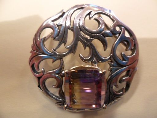Sterling silver and 14K yellow gold pendant set with customer's roll top cushion cut natural Ametrine.