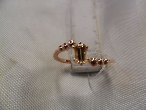 14K rose gold 12 prong solitaire mounting set with a precious topaz.