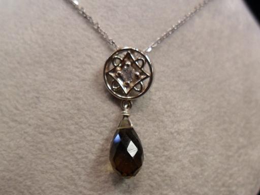 Smoky quartz briolette/filigree diamond pendant bead set in 14K white gold.