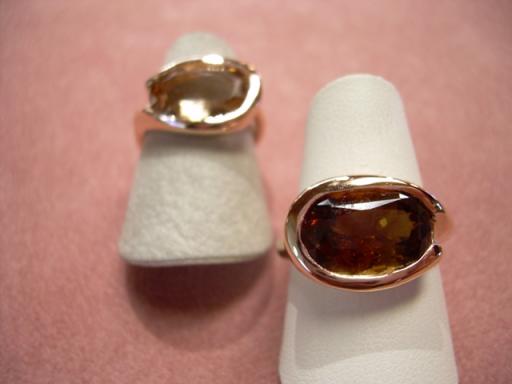 14K rose gold oval imperial topaz semi-bezel mother and daughter rings.